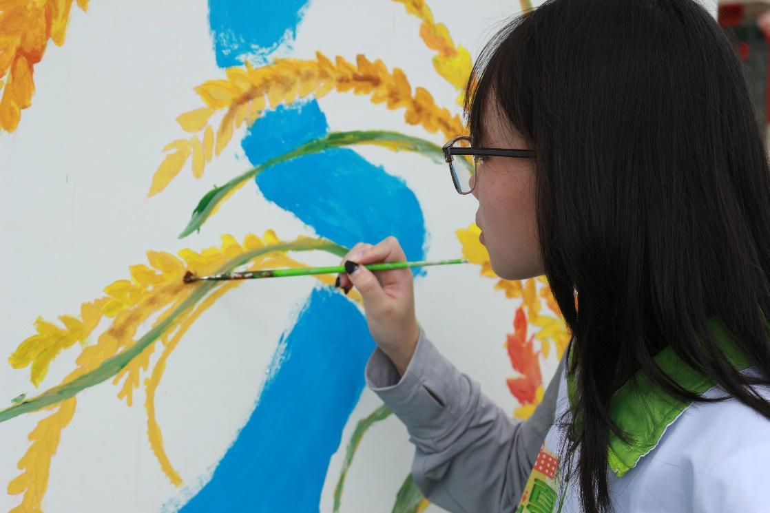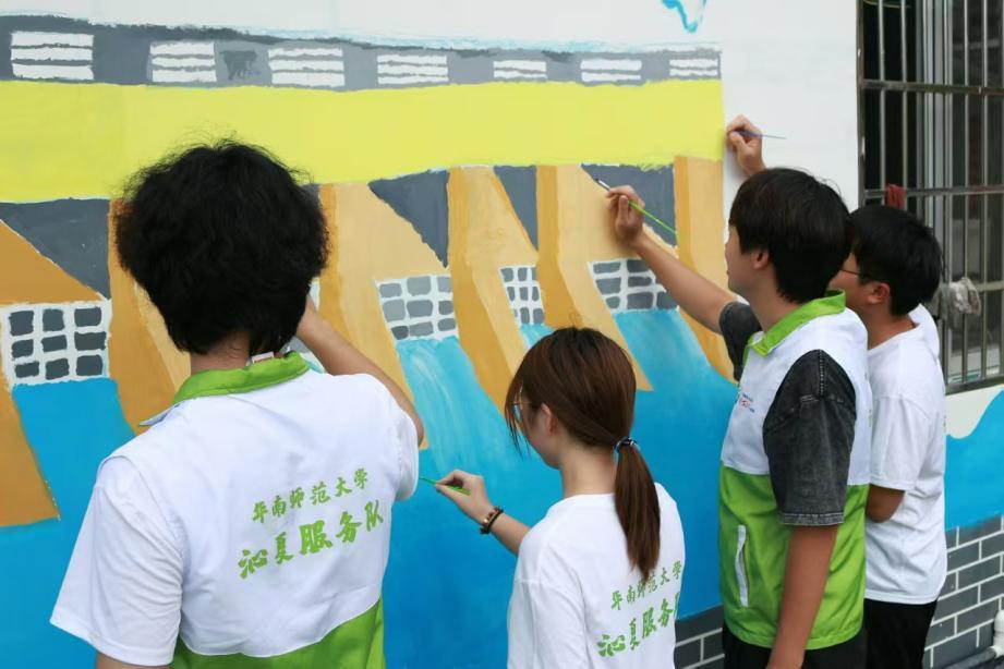 圖6 沁夏服務隊在墻繪(攝影:華南師范大學 刁語霏)