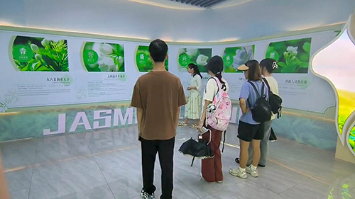 7月25日上午,實(shí)踐團(tuán)來到了位于橫州市校椅鎮(zhèn)的茉莉極萃園。園內(nèi)展館展示了茉莉花文化的起源、發(fā)展,以及茉莉花制成的護(hù)膚品,食品等產(chǎn)品。“近年來,橫州吸引了許多國內(nèi)外知名茶飲品牌到這里建廠,研發(fā)新的產(chǎn)品”,展館講解員說,F(xiàn)如今,橫州市已成為全球最大的茉莉花和茉莉花茶產(chǎn)業(yè)基地,有著“中國茉莉之鄉(xiāng)”“世界茉莉之都”的美譽(yù)。在講解員的講解下,隊(duì)員們對橫州茉莉花文化和產(chǎn)品有了更深的了解。