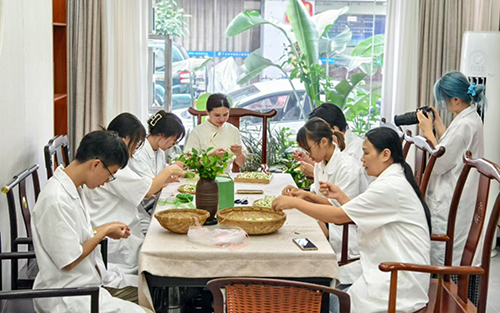 為了更好了解茉莉花產(chǎn)品的生產(chǎn)過程,7月26日,實(shí)踐團(tuán)來到了橫州花道花業(yè)有限公司。在企業(yè)負(fù)責(zé)人的帶領(lǐng)下,實(shí)踐團(tuán)參觀了茉莉花茶的生產(chǎn)車間,了解到茉莉花茶制作過程包括七個(gè)關(guān)鍵工序:養(yǎng)花、篩花、上花、窨花、通花、起花和烘干,每個(gè)工序都需要員工嚴(yán)格把關(guān)、執(zhí)行,才能 制作出高品質(zhì)的茉莉花茶。隊(duì)員們穿著工服,在一名員工的指導(dǎo)下對未處理的茉莉花茶葉進(jìn)行粗篩挑選,隨后將生產(chǎn)好的茶葉進(jìn)行裝袋封口。整個(gè)實(shí)踐過程下來,隊(duì)員們對茉莉花茶生產(chǎn)流程有了更深刻的了解。對于茉莉花產(chǎn)品生產(chǎn)存在的問題,隊(duì)員們也給出了自己的想法,希望茉莉花產(chǎn)品可以創(chuàng)造更大的價(jià)值。