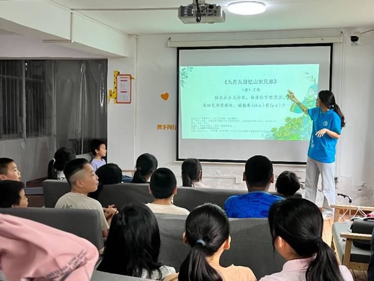 (圖為實踐團成員講解古詩詞 蔣婷攝)