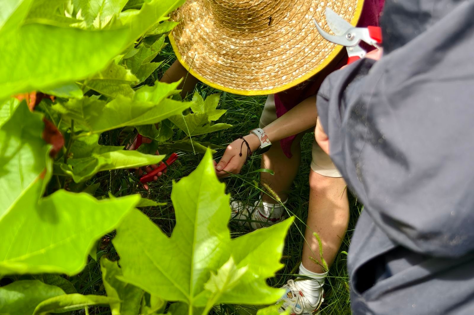 為了進一步提升其觀賞價值和生長效果,團隊將實踐聚焦于修剪無毛懸鈴木的側(cè)枝,旨在通過合理的修剪技術(shù)來增強樹木的頂端優(yōu)勢,優(yōu)化其生長結(jié)構(gòu)。成員們對選定的無毛懸鈴木進行了細致觀察,評估其生長狀況、枝條分布及健康狀況,注意識別需要修剪的側(cè)枝,包括過密、交叉、病蟲害嚴重或生長不良的枝條。隨后成員們在魏經(jīng)理的教導(dǎo)下學(xué)習(xí)植物修剪的具體部位、方法(如短截、疏枝、摘心等)及預(yù)期效果,按照修剪方案逐步對苗圃部分無毛懸鈴木進行修剪。