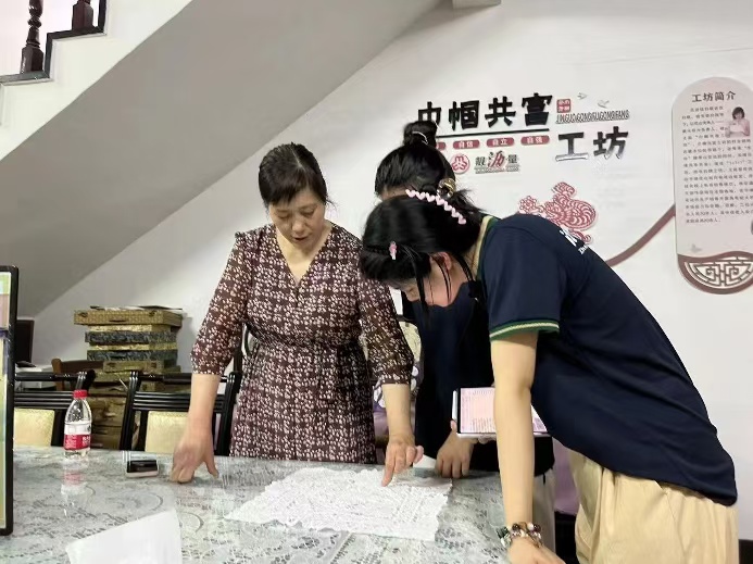 7月8日下午,該團隊來到了國家級非遺蕭山花邊傳承人王麗華女士的工作室,進行了一場深度對話,搭建“技藝”與“記憶”溝通的橋梁。