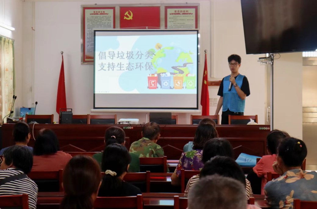 為響應國家生態文明建設的號召,團隊積極投身生態環境保護工作中。期間組織開展了植保除雜草活動,維護生態平衡,隊員們用手握住雜草的莖部,盡量靠近根部用力連根拔起,對于扎根較深的雜草,借助小鏟子等工具松動根部周圍的土壤,以確保將雜草連根清除;回收廢舊瓶罐,隊員仔細查看并收集各個角落,包括垃圾桶、綠化帶等殘留的廢舊瓶罐。對于廢舊瓶罐進行初步的分類整理并協助運輸到指定的回收處。團隊還深入社區進行垃圾分類知識宣講,包括垃圾分類意義及方法,提升村民環保意識,打造綠色宜居的鄉村環境。