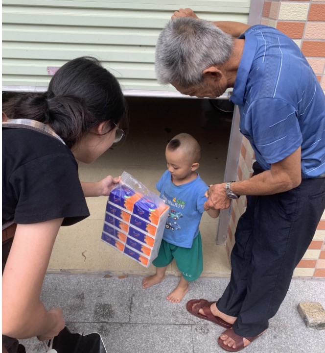 (圖為團隊給農民送解暑飲料)