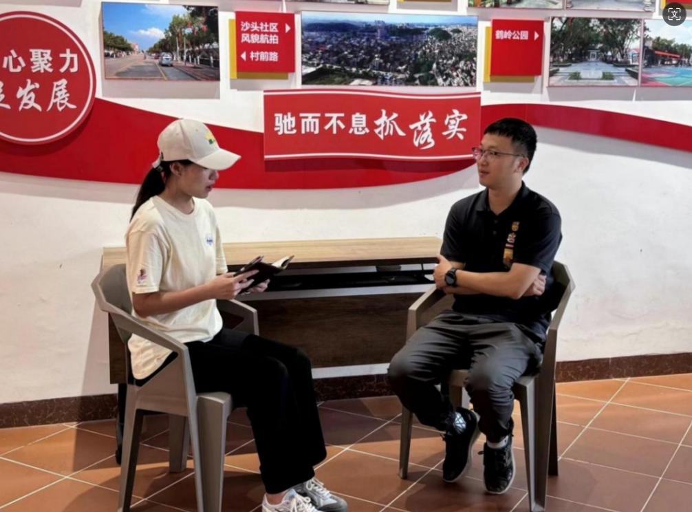 (圖為團隊成員劉雨晴采訪沙頭宣傳文體工作人員)