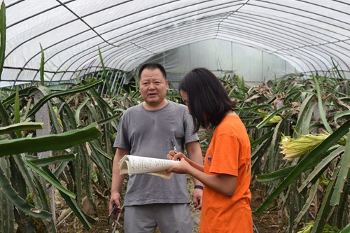 采摘間隙,實踐團成員與曾強先生進行了深入交流,就火龍果的種植技術、病蟲害防治、市場營銷策略等方面進行了細致探討。這種面對面的交流不僅加深了實踐團對現代農業產業化的認識,也為他們未來的學術研究與社會實踐提供了寶貴的素材和靈感。