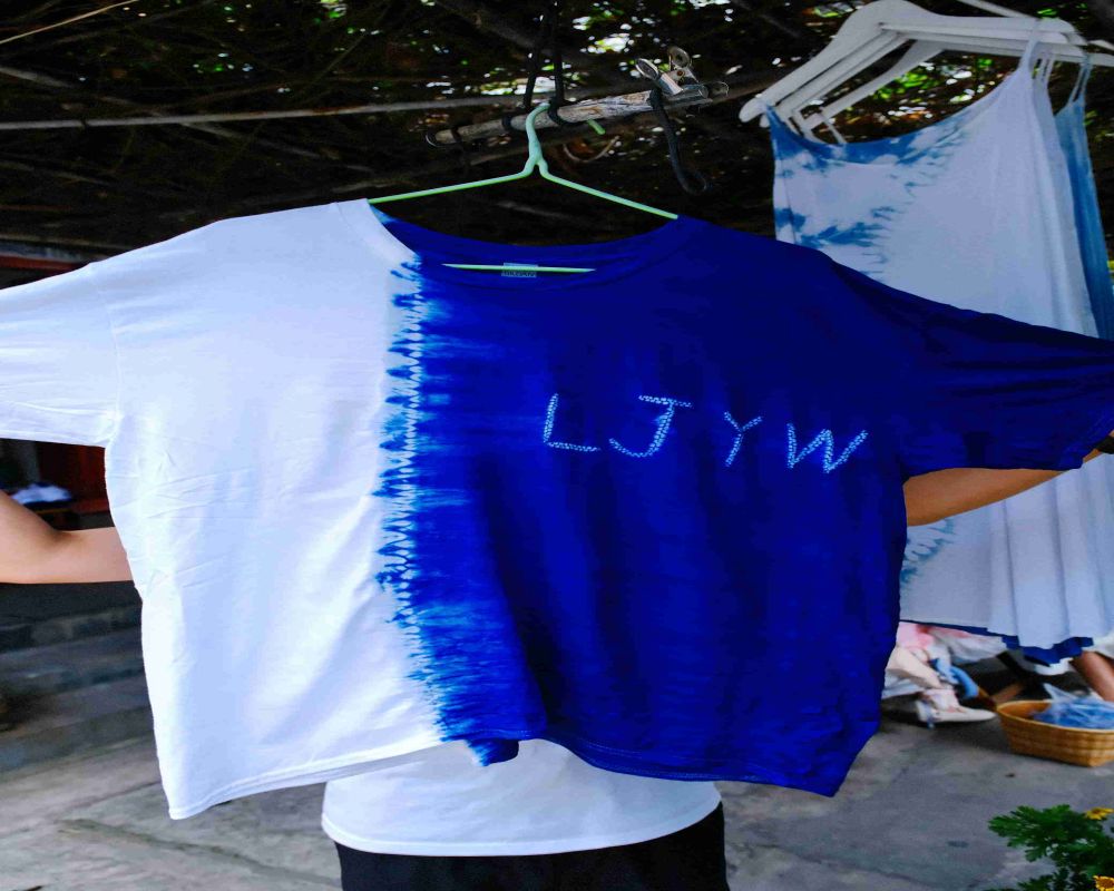實踐出真知,文化的傳承絕非易事,盡管手法略顯笨拙,但在我們的共同努力下,我們創作出一件獨具團隊特色的隊服,這不僅體現了扎染技藝的自然之美,也是我們團隊調研的又一份“勛章”。