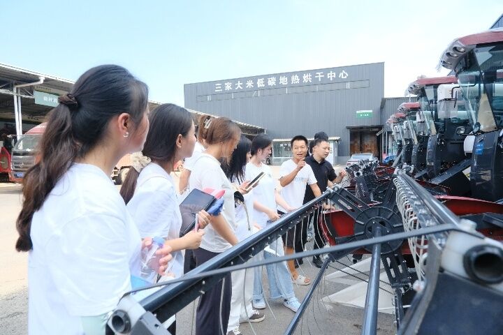在園區的糧油倉儲加工區,實踐隊成員參觀了現代化的大米加工生產流水線,以及先進的糧油倉儲設施。無人機噴灑農藥、機器翻耕稻田,現代化農業機械裝備的投入,不僅大幅提升了農業生產效率,也彰顯了科技在現代農業發展中的核心地位。
