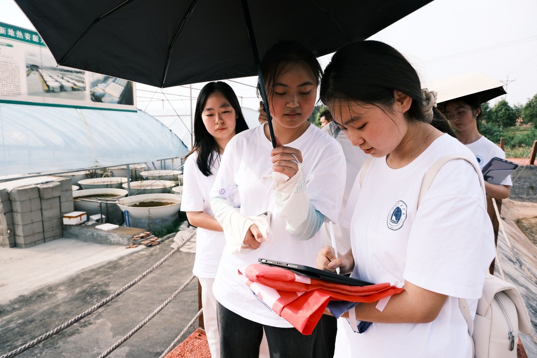 圖為實踐隊成員記錄地熱養魚相關技術內容。李欣蕊 供圖