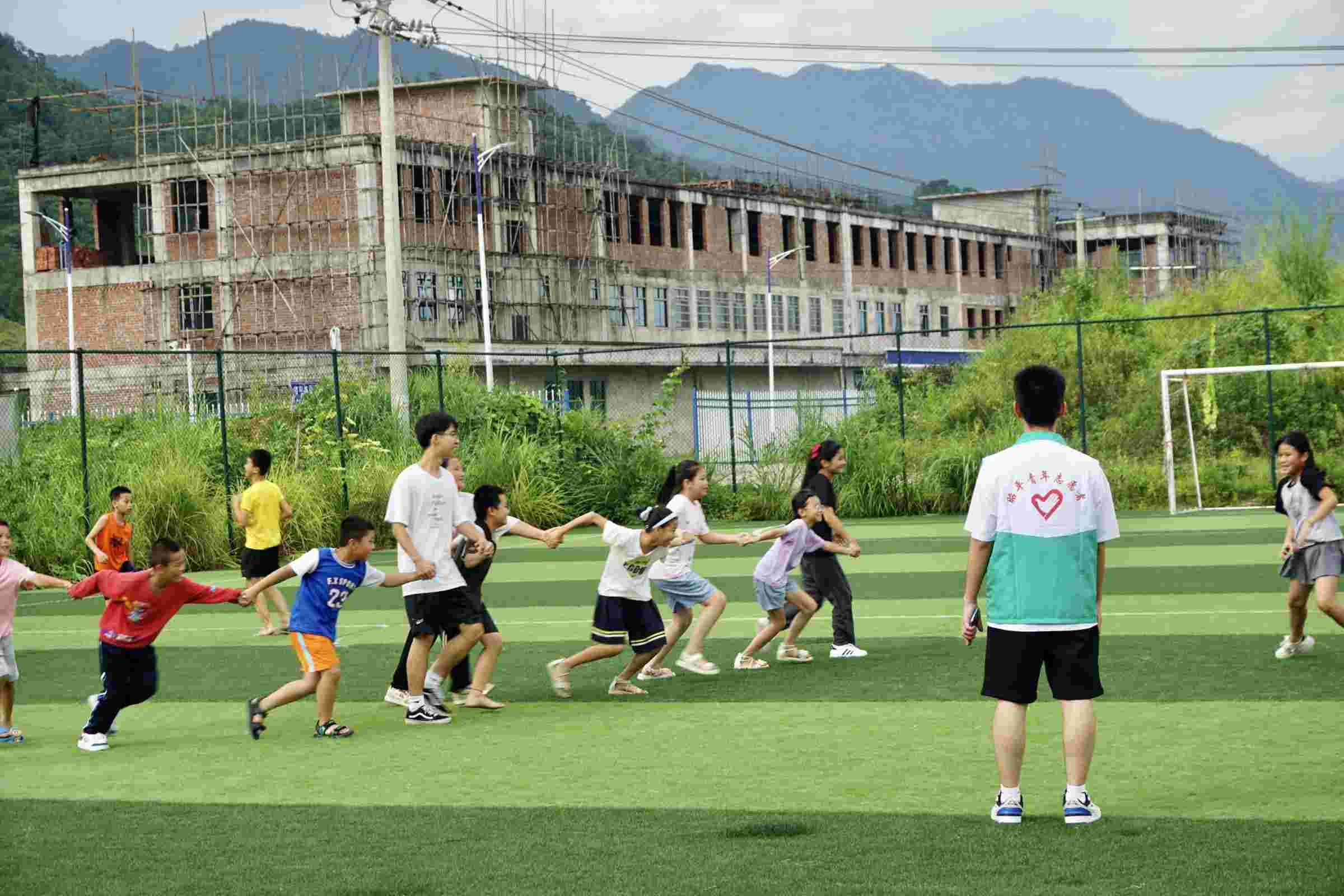 圖為團隊成員在對學生進行活動教學2本次調研不僅揭示了易地扶貧搬遷社區青少年體育公共服務的發展困境,更為相關政策的制定和實施提供了實證基礎。通過改善體育公共服務,不僅能促進青少年的身心健康,還能增強社區凝聚力,為鄉村振興注入新的活力。