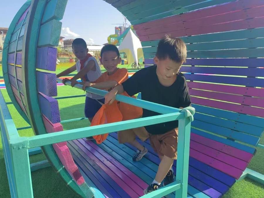 圖為孩子們在游樂園愉快地玩耍 陳舒婷攝