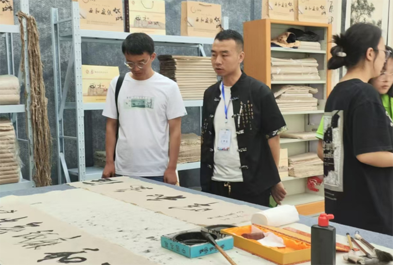 尹芳東老師,西和麻紙第四代傳人,在西和乞巧文化苑,尹芳東老師與他的團隊現場展示了麻紙工藝品的制作過程,將傳統與現代巧妙融合讓在場的每一位參與者都感受到了麻紙背后的文化魅力。
