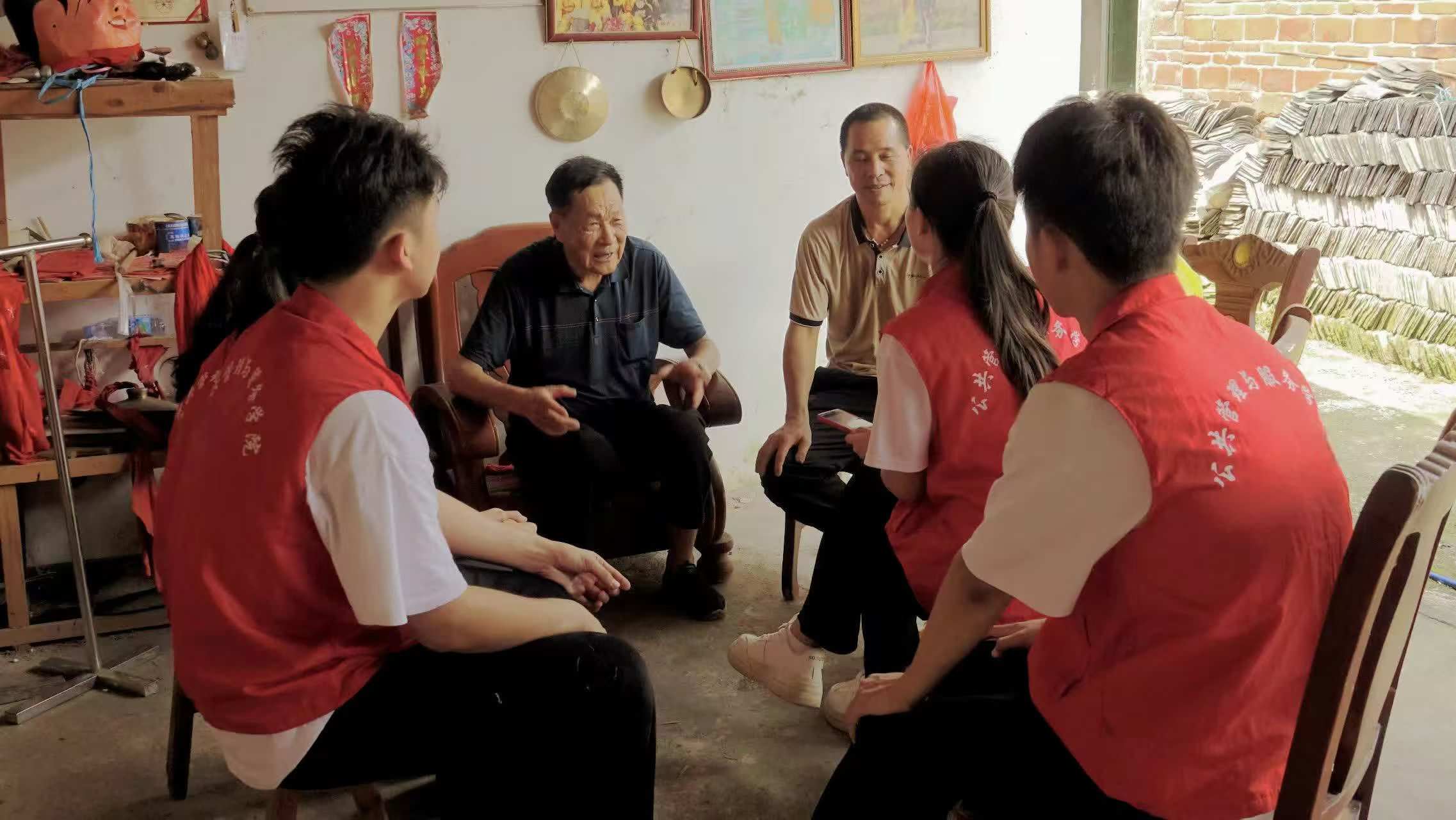 (圖為實踐隊員采訪貓頭獅非遺傳承人)