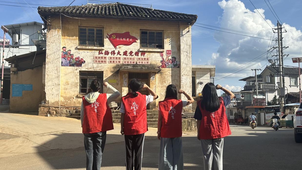 7月15日中午,實踐團隊到達塔甸鎮,向當地政府工作人員熟悉塔甸鎮的相關情況,并與此次活動負責人進行了深入交談,了解相關情況,便于實踐團隊安排接下來的活動進度。工作人員與團隊成員分享他們一路走來的工作經歷和經驗,志愿者也紛紛感慨到基層工作人員的不容易。傍晚,實踐團隊成員漫步在鄉村小路,看到一幢標有“弘揚偉大建黨精神”的建筑,心情都很激動,油然而生地抬起手默默注視,表示對共產黨崇高的敬意,假如沒有他們當初的浴血奮戰,就沒有今天的幸福生活。