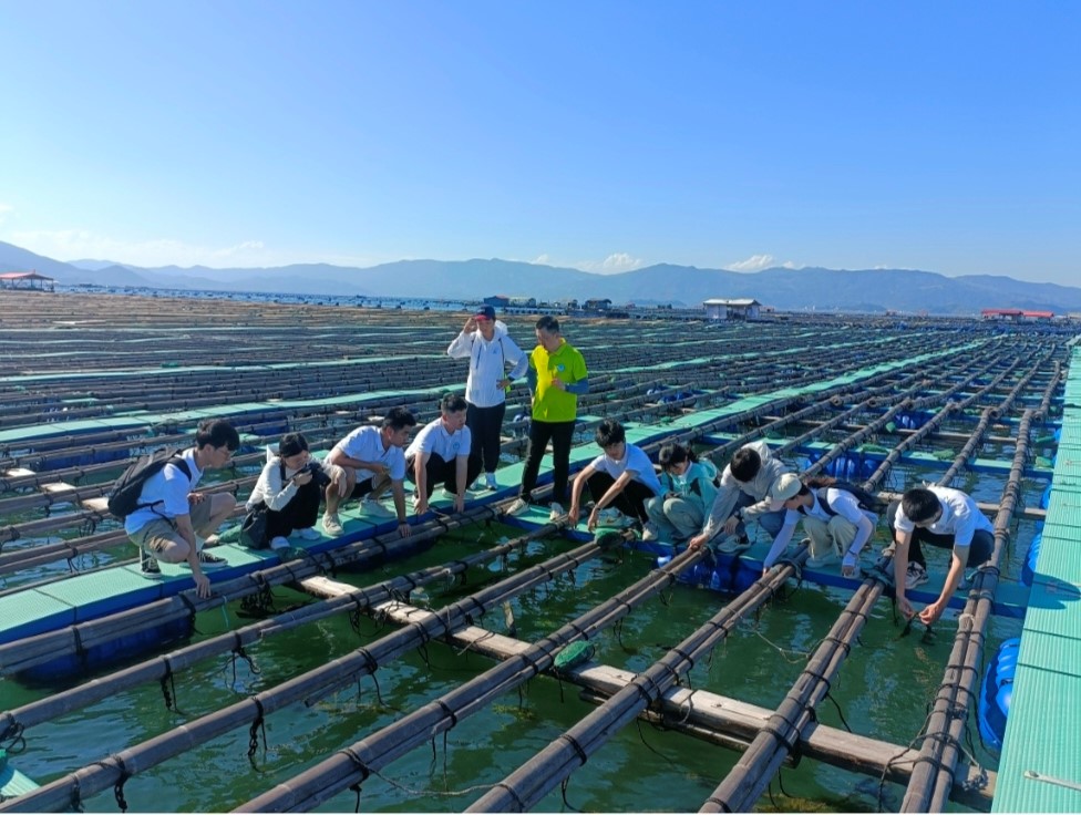 圖2 老師與我們講解有關海參的網箱養殖知識