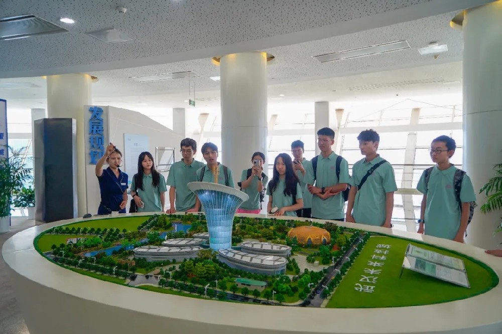 講解員為隊(duì)員們講解科技未來(lái)城背景