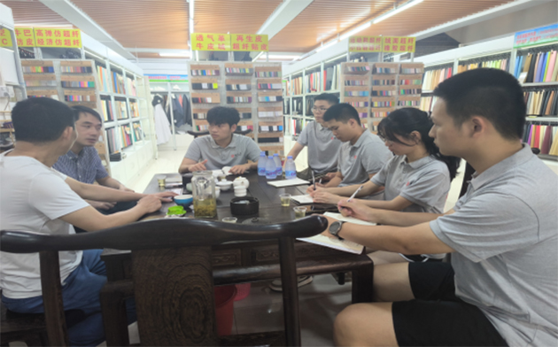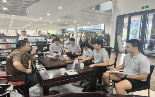 實踐隊先后與鞋紡城中昌溢鞋材貿易有限公司、福昌鞋材有限公司相關負責人座談,共同探討晉江國際鞋紡城助力鞋材企業提升市場競爭力與市場影響力的相關舉措,通過實地調研,晉江國際鞋紡城這一大平臺為鞋材企業提供重要的發展契機與效率工具,利用數字化工具展示實時數據,協助商戶緊握市場需求,進行精準研發設計,從而提高中國鞋材市場競爭力。除此之外,商戶們表示對鞋紡城的倉儲方面有著更高期待,以及對鞋紡城服務與引導鞋材企業發展的肯定與贊許。