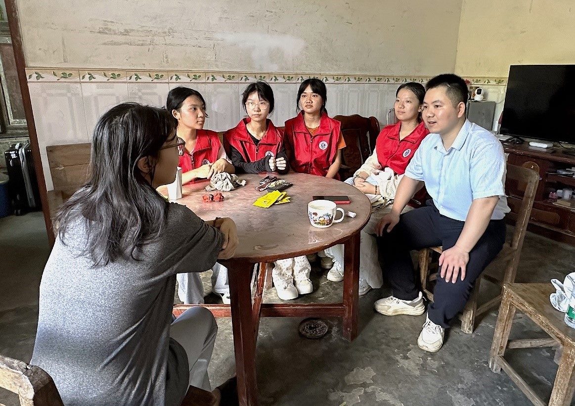醫暖山湖實踐團正在和村委干部交流學生家庭情況