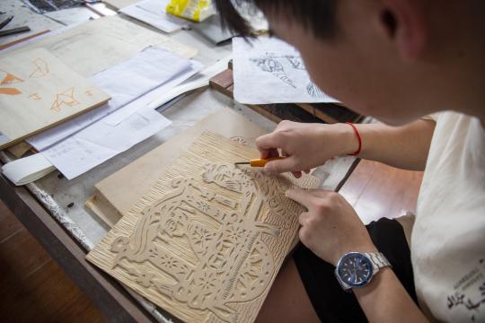 團隊成員學習壯族農民版畫 霍柄昊攝