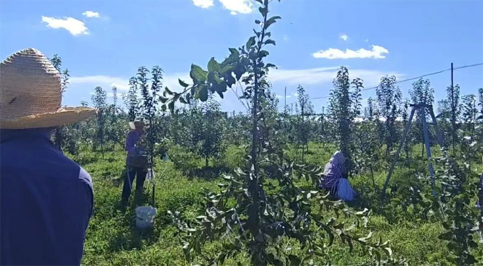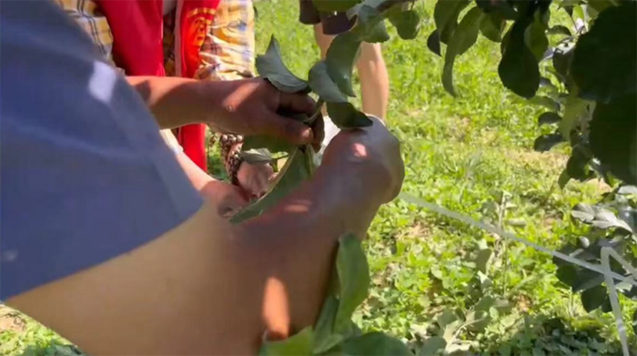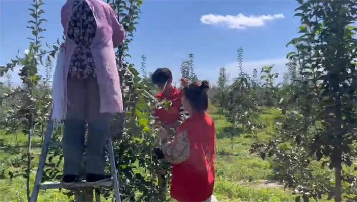 為了讓遠方的觀眾能夠更為真切地體悟這片土地的獨特魅力,實踐團的講解成員勇敢無畏地邁進蘋果園區,親身投身于種植的每一個細微環節,并通過云課堂進行實時直播。在果農的耐心悉心指導之下,他們揮汗如雨地學習挖坑、施肥、澆水、修剪枝葉等操作。直播鏡頭之中,那沾染著泥土卻依然綻放著熾熱激情的笑臉,仿佛正在娓娓訴說著鄉村不懈奮斗的傳奇故事,讓觀眾們仿若身臨其境,共同感受這份源自土地的深厚情誼與無限希望。