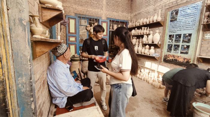 我們在自治區(qū)級新疆土陶第六代傳承人吐爾遜·祖農(nóng)的帶領(lǐng)下,與國家級非物質(zhì)文化遺產(chǎn)“模制法土陶燒制技藝”第七代傳承人吐爾遜·肉斯塔木等傳承人進(jìn)行了深入交流。