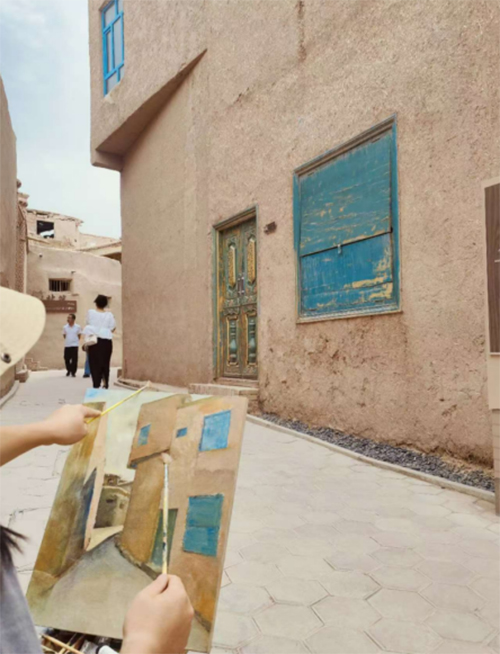吐爾遜·祖農(nóng)師傅向我們講述了土陶制作的歷史起源、技藝傳承以及面臨的挑戰(zhàn)。他表示,土陶制作技藝精湛,每一道工序都需要嚴(yán)格把控,稍有不慎就會導(dǎo)致作品失敗。盡管如此,每位傳承人都用自己的雙手和智慧,將這份古老的技藝傳承至今,并不斷創(chuàng)新和發(fā)展。他還表示,希望通過國家的重視和支持,推動土陶產(chǎn)業(yè)的創(chuàng)新和發(fā)展,吸引更多年輕人加入這一行業(yè),共同傳承和發(fā)揚(yáng)這一傳統(tǒng)技藝。我們聆聽傳承人的講述,深刻感受到了制作土陶的艱辛和不易。從選材、揉泥、拉坯、雕刻到燒制,每一個環(huán)節(jié)都需要匠人們傾注大量的和汗水,這讓我們更力珍惜和尊重非遺文化,也更加堅定了我們?yōu)楸Wo(hù)和傳承非遺文化貢獻(xiàn)力量的決心,此次調(diào)研活動還見證了高臺民居保護(hù)利用工程的新進(jìn)展。喀什高臺民居歷史文化街區(qū)保護(hù)利用工程堅持原真保護(hù)與風(fēng)貌保護(hù)相結(jié)合的原則,在對歷史民居、傳統(tǒng)風(fēng)貌建筑等進(jìn)行整體性保護(hù)提升的基礎(chǔ)上,適當(dāng)植入文化旅游業(yè)態(tài),傳續(xù)激活高臺民居古老的文明和多彩的文化,實現(xiàn)喀什高臺民居的可持續(xù)發(fā)展。