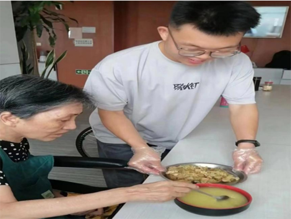 圖為實(shí)踐團(tuán)成員為老人打飯