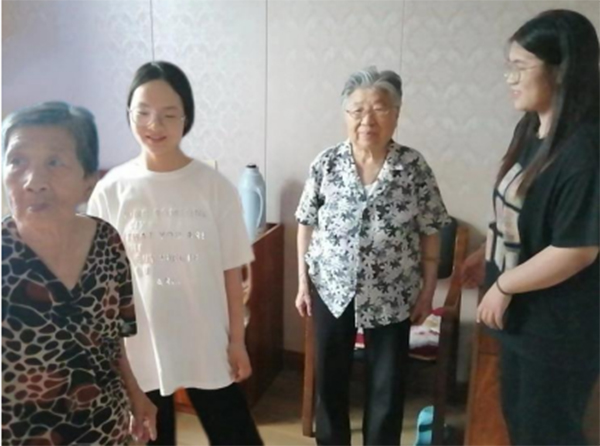 圖為實(shí)踐團(tuán)成員馬麗鑫與高澤琪與老人進(jìn)行親切交流