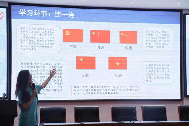 隨后是我校志愿者們開展的“祖國旗幟在我心”活動。志愿者們通過展示形象直觀的圖片、播放精彩有趣的視頻和講解生動感人的故事等方式,深入淺出地向磁澗鎮禮河村的青少年們講解了國旗、黨旗、軍旗等的誕生歷程及其背后蘊含的深刻意義和價值,讓青少年們深刻領悟到祖國旗幟所承載的民族精神和國家尊嚴,增強了他們的國家認同感和民族自豪感。