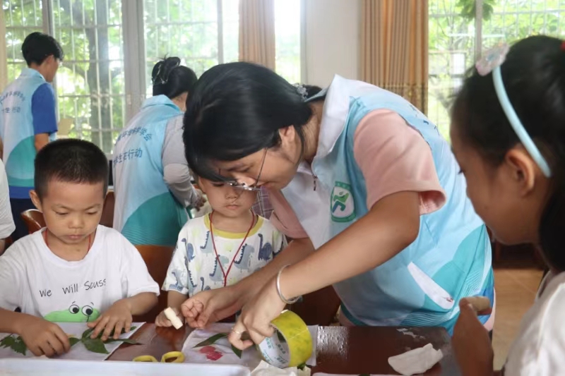 圖為小經心實踐隊開展非遺植物拓染體驗活動
