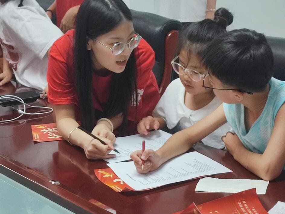 圖為“紀法清風燕趙行”社會實踐隊在洺湖社區黨群服務中心幫助未成年人填寫問卷 邢佳昊攝