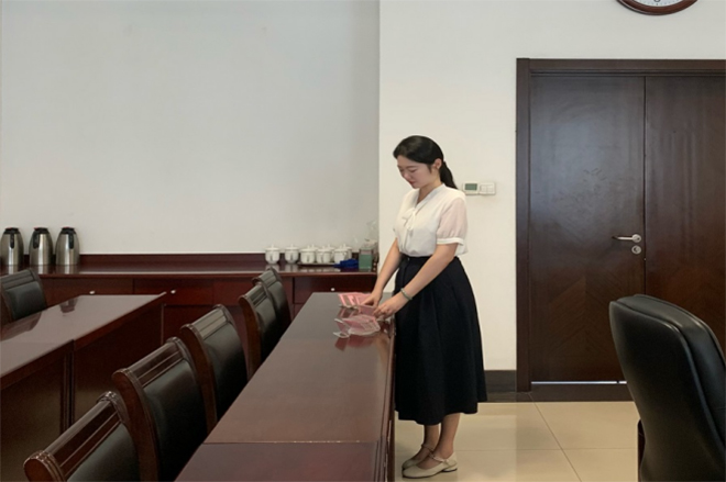 圖為袁鑫同學在濟南市教育局進行會務服務