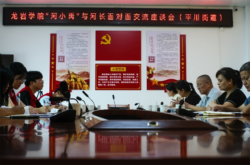 隨后,龍巖學院“河小禹”接著向下探索,與平川街道河長開展面對面交流座談會。