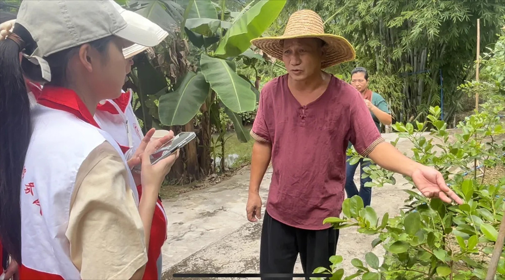 圖為紅旅研途志愿服務隊與中草藥基地負責人何永添合影留念 作者:陳曉增