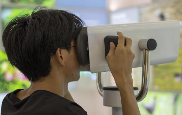 圖為實踐團成員桂利輝正在使用VR互動裝置進行體驗觀察。鄒奇供圖