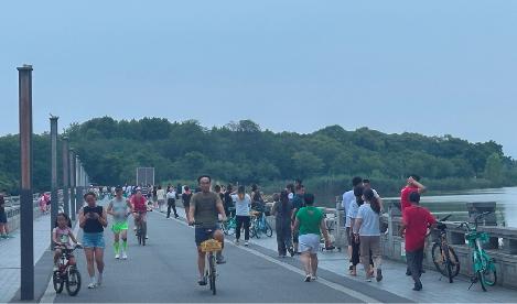 前不久,“公園20分鐘效應(yīng)”刷屏各大社交媒體平臺。眾多網(wǎng)友紛紛嘗試,“親測有效”“讓我很快樂”是他們真實的心得體會。傍晚時分,青龍湖濕地公園便成為了市民實踐“公園20分鐘效應(yīng)”的理想場所。實踐團成員用鏡頭記錄下了青龍湖旁晚時分市民們的活力場景。市民們或悠閑地散步,或在騎行揮灑汗水,展現(xiàn)出公園城市帶給人們健康、和諧的生活方式。“自從公園建成以來,我每天都來這里散步,感覺身心都得到了放松。”一位當(dāng)?shù)鼐用穹窒淼馈A硪晃皇忻癖硎荆?ldquo;公園城市的建設(shè)讓我們的城市更加美麗,也讓我們更加關(guān)注環(huán)境保護。”公園內(nèi)湖水清澈,水生植物繁茂,為多種水鳥提供了理想的棲息地。實踐團成員在湖邊觀察并記錄了包括白鷺在內(nèi)的多種鳥類,這些生物的存在不僅豐富了城市的生物多樣性,也提升了市民的生態(tài)保護意識。