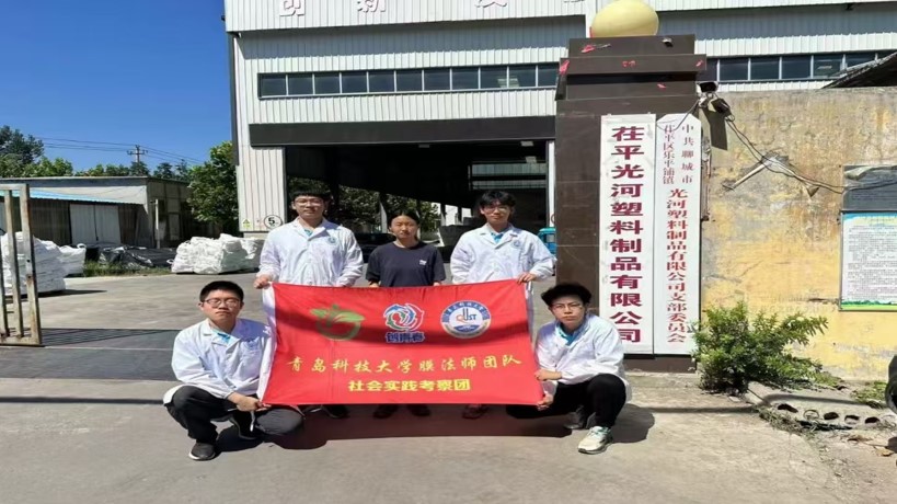 青島科技大學校園內——2024年8月12日,一群來自“膜法師”團隊的大學生、懷揣環保夢想與科技創新熱情,踏上了前往聊城市茌平縣光河塑料制品有限公司的參觀學習之旅。此行旨在深入學習制膜工藝,特別是針對農膜的使用與銷售現狀,為團隊正在研發的超疏水可降解抑菌植物纖維地膜項目汲取寶貴經驗。