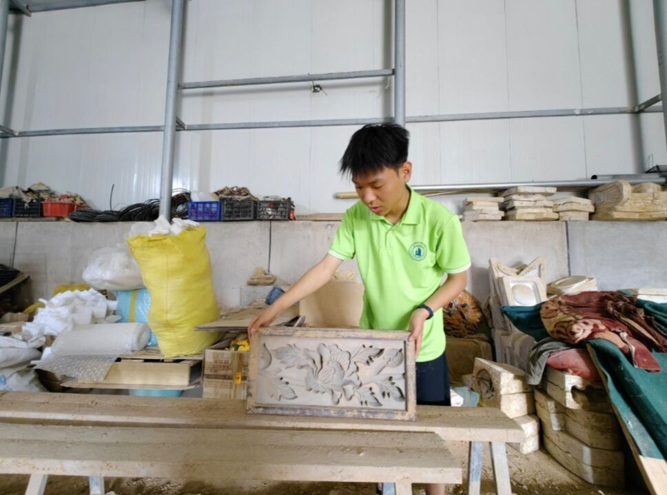 王師傅介紹道:“脊獸制作既辛苦又細致,每一個制作環節都要精益求精。一件作品從選材到成品往往需要數月時間,這不僅考驗著匠人的技藝水平,更考驗著他們的耐心與毅力。”他的話語中透露出對脊獸技藝的熱愛與堅守,也深深感染了在場的每一位實踐團成員。