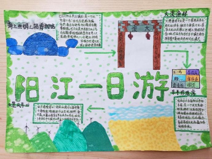 在文旅設計活動介紹課程的過程中,高佳瑜先為學生們說明什么是“文旅”和“文旅設計”,即通過手繪旅游路線和文字介紹的形式,將文化和旅游結合起來,介紹優秀文化,向學生們清楚呈現此次活動的重要主題。課程采用獨特的活動形式,鼓勵學生結合家鄉陽江的文化資源提出新穎獨特的路線設計,挖掘家鄉地域特色和文化底蘊,對陽江旅游資源進行深入理解和創新設計,有利于培養學生創新意識。