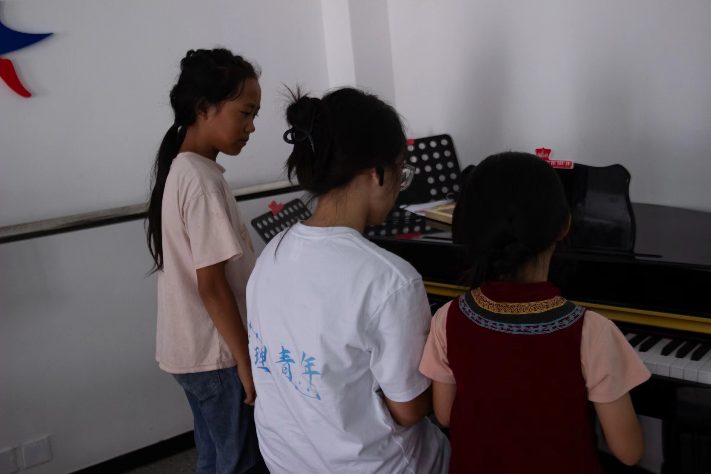 藝術(shù)旋律,觸動心靈深處 當(dāng)吉他的和弦與鋼琴的旋律交織在一起,整個(gè)教室仿佛變成了一片旋律的海洋。志愿者們不僅教授了基本的音樂知識,還讓孩子們親手觸摸樂器,感受音樂帶來的快樂與自由。在音符的跳躍中,孩子們的夢想與希望也隨之起舞。