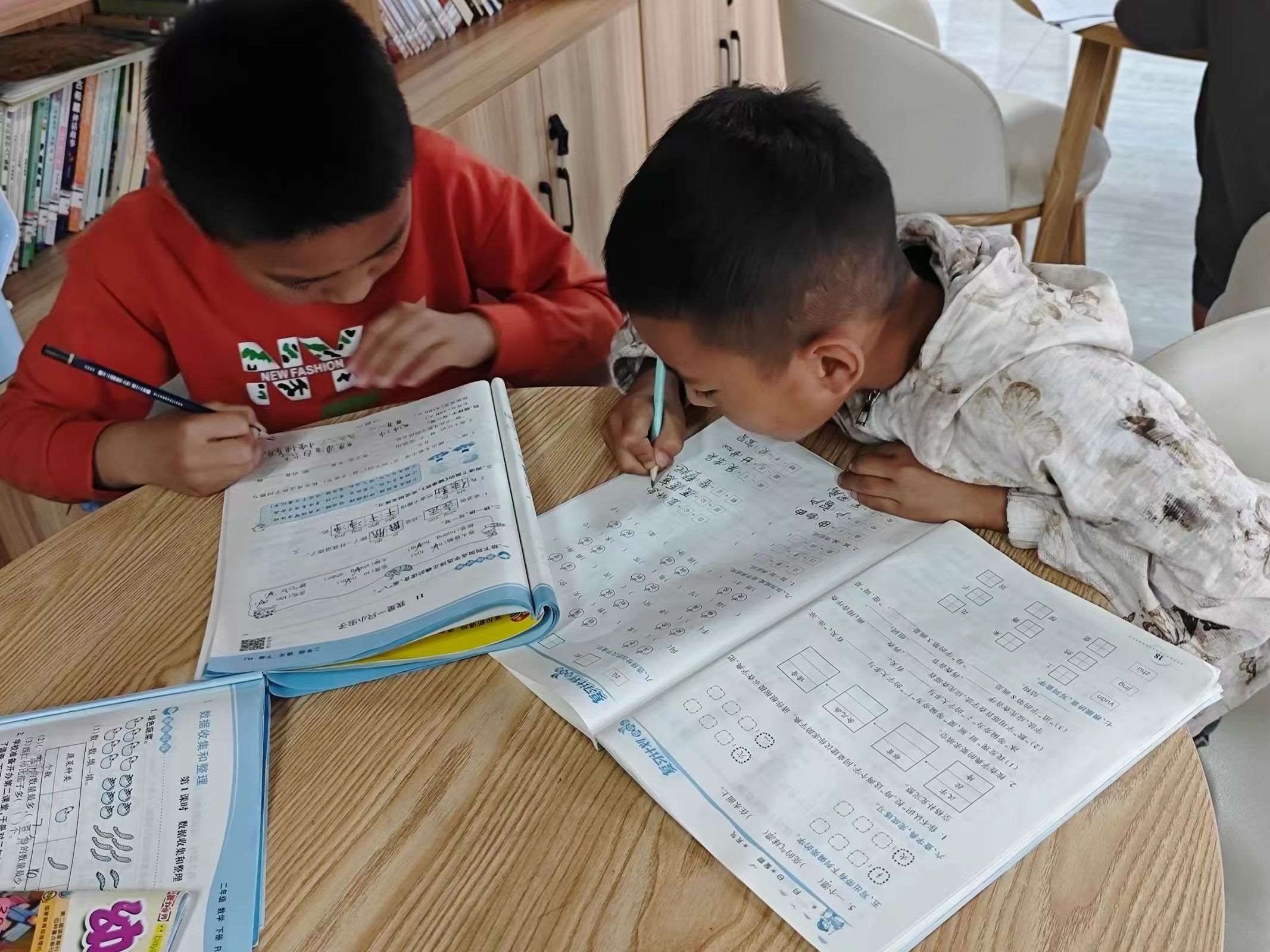 圖為社區(qū)小朋友認(rèn)真完成暑假作業(yè)(何維希攝)