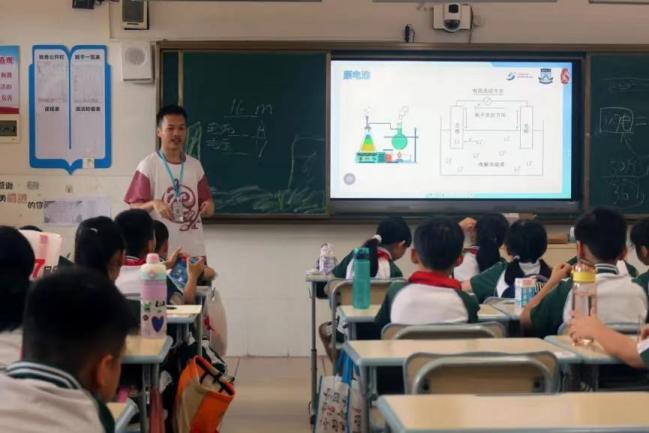 在“電池探秘之旅”課程中,黃坤帶同學(xué)們進(jìn)入電池的神奇世界,首先黃坤以自然界中的電開頭,使用自媒體進(jìn)行科學(xué)實(shí)驗(yàn)?zāi)M,向同學(xué)們展示靜電的奧秘,接著簡述人類存儲電的歷史,進(jìn)而引入電池,讓同學(xué)們走進(jìn)化學(xué)史,了解科學(xué)家在科學(xué)探索時(shí)的故事,并學(xué)習(xí)科學(xué)家的科研精神。從普通的干電池到高科技的鋰離子電池,黃坤與同學(xué)們一同揭開電池背后的奧秘,探索它們在手機(jī)、電動車和太陽能系統(tǒng)等現(xiàn)代生活中的無處不在的應(yīng)用。接著黃坤以更加符合學(xué)生學(xué)情的方式去講解電池的基本原理。通過這趟電池探索之旅,同學(xué)們不僅了解電池對環(huán)境的影響,更會學(xué)會正確的使用和回收方法,收獲環(huán)保知識。課堂的最后黃坤進(jìn)行實(shí)驗(yàn)操作,使用鹽水、銅片鐵片、導(dǎo)線為材料制備簡易的原電池,激發(fā)同學(xué)們的科學(xué)好奇心,讓同學(xué)們體驗(yàn)科學(xué)的樂趣。