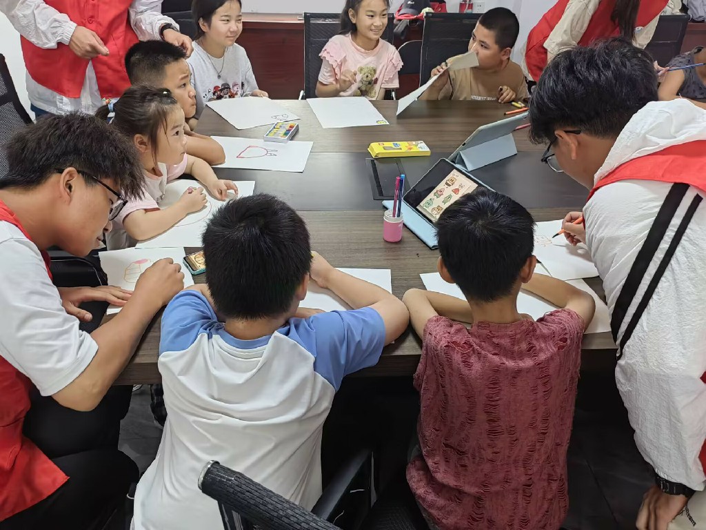 關(guān)愛兒童身心發(fā)展,助力寶貝幸福成長 7月3日,團(tuán)隊(duì)前往綠園社區(qū)服務(wù)中心,教鎮(zhèn)上的小朋友們畫畫、跳舞,幫助他們培養(yǎng)創(chuàng)造力與自我表達(dá)。通過畫畫和跳舞,小朋友能夠自由地表達(dá)自己的情感和想法。這不僅有助于他們發(fā)展創(chuàng)造力,還能提高自我表達(dá)的能力,提升自信心。最后,實(shí)踐團(tuán)隊(duì)為小朋友們頒發(fā)“優(yōu)秀寶貝”獎(jiǎng)狀,并合影留念。