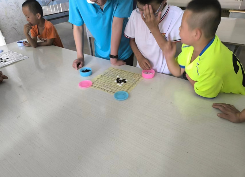 室內室外,“有機結合” 有時逢雨時或天氣炎熱時,我們會帶領小朋友們進行室內的一些活動,其中包括五子棋、飛行棋、圍棋、捏橡皮泥、制作小扇子(利用提前買的工具)等,在整個過程中,有些孩子具有明顯的天賦,在我們指導不久便能取得很好的成果。