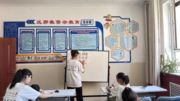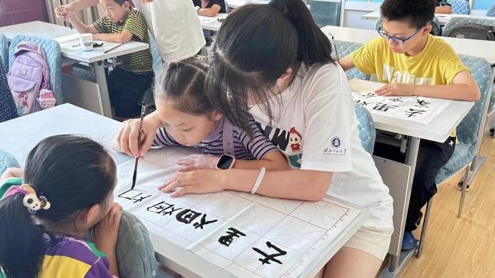 團(tuán)隊(duì)成員鄒哲陽為學(xué)生們繼續(xù)上書法課程,在學(xué)習(xí)“一”到“十”基本書法技法的基礎(chǔ)上,繼續(xù)學(xué)習(xí)《山村詠懷》的其他更為復(fù)雜的字詞,學(xué)生們更加耐心的練習(xí),在這堂課程中,學(xué)生們不僅學(xué)到了一些書法的基礎(chǔ)技巧,更重要的是,他們更加專心的學(xué)習(xí)書法,戒驕戒躁,明顯比第一節(jié)書法的學(xué)習(xí)更卓有成效,在學(xué)習(xí)過程中,學(xué)生們增強(qiáng)了文化自信心。鄒哲陽老師表示,將繼續(xù)積極推廣傳統(tǒng)文化教育,讓更多的孩子能夠接觸和了解中國傳統(tǒng)文化,從而更好地傳承和發(fā)揚(yáng)中華民族的優(yōu)秀文化。