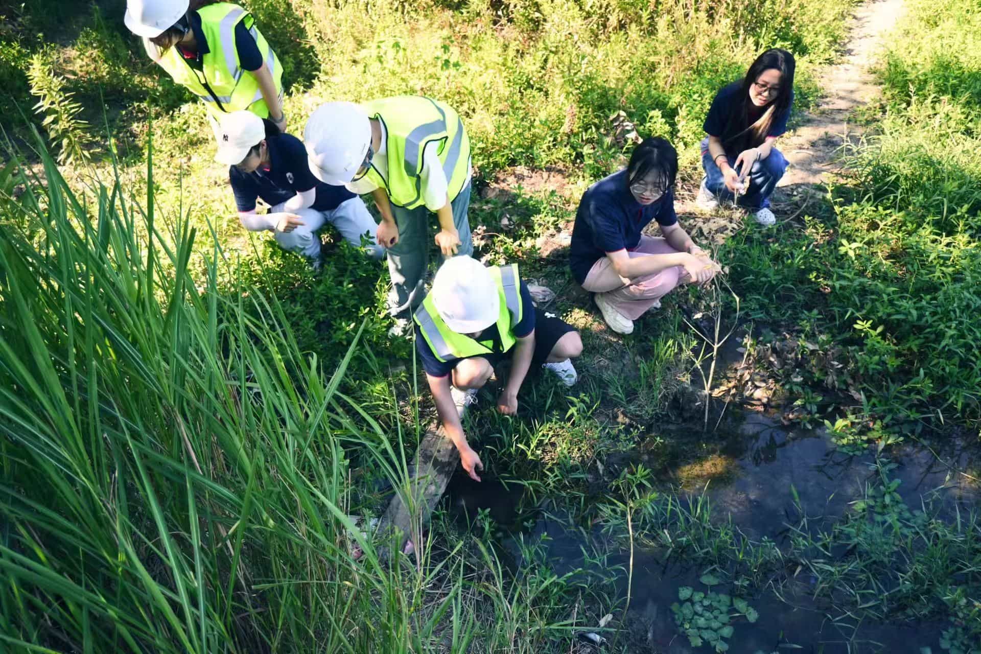 圖為實踐隊員觀察水庫植被覆蓋情況。肖星源 供圖