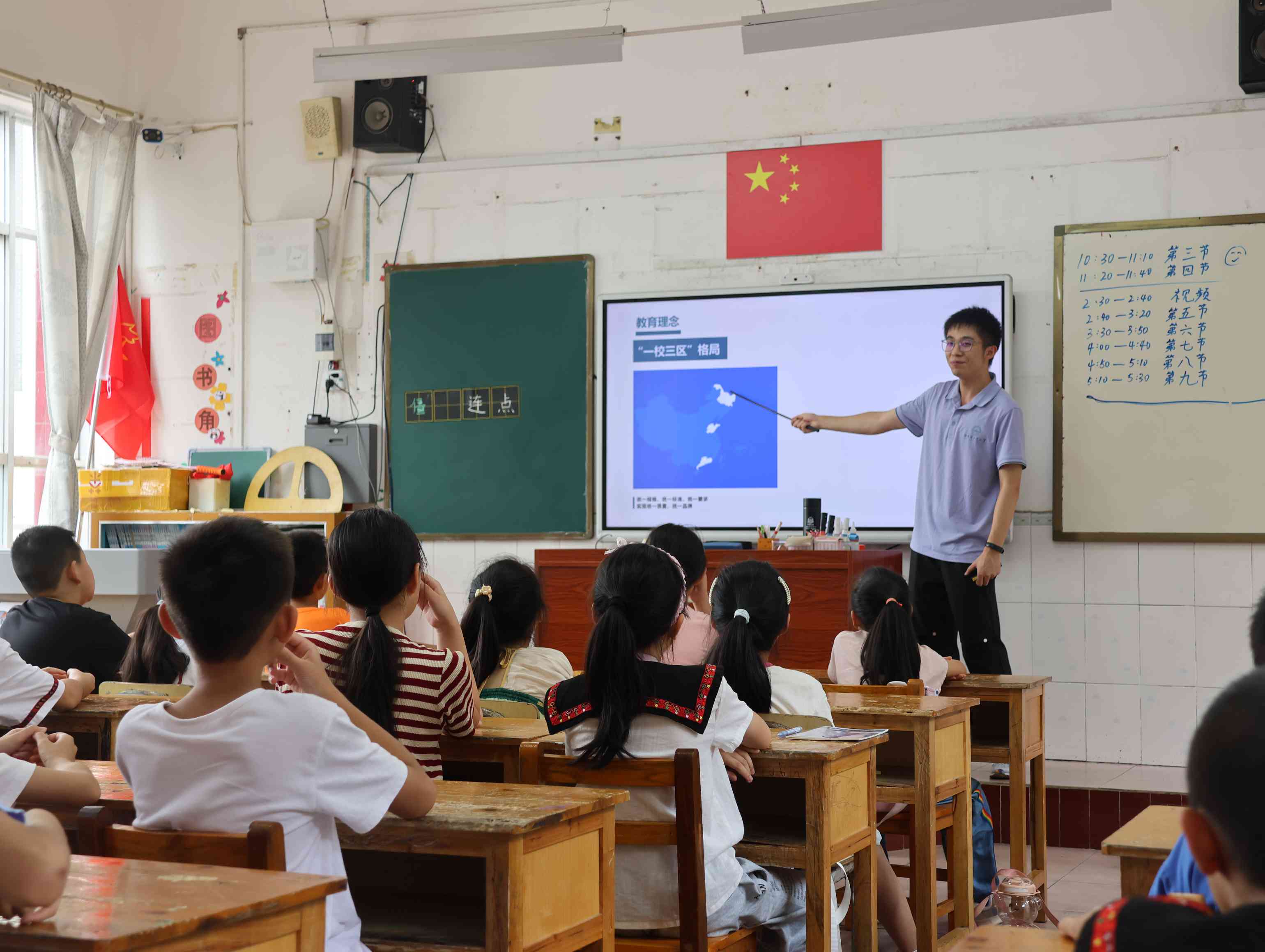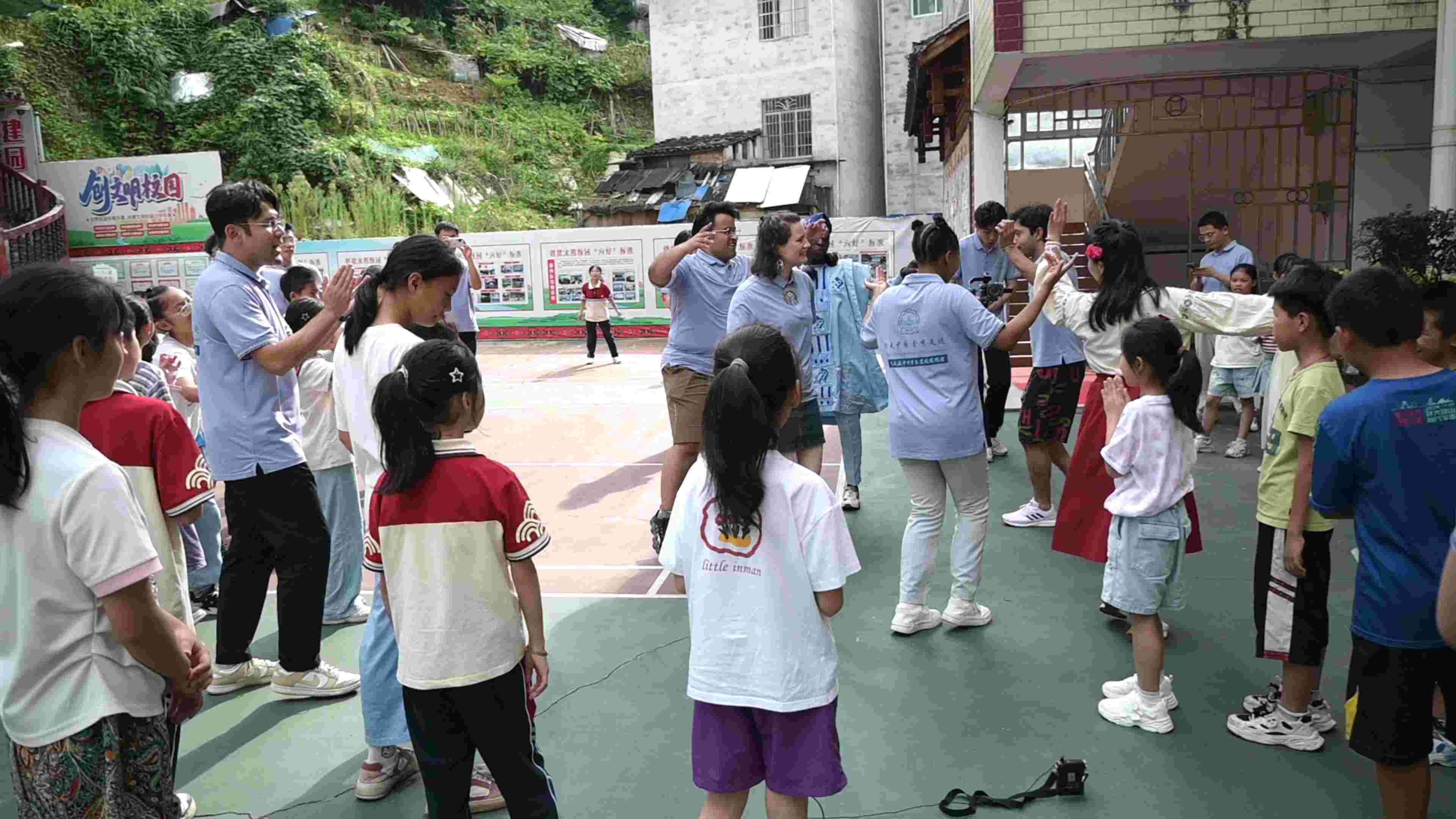 在支教的過程中,隊(duì)員們不僅是知識的傳遞者,更是文化的交流使者。支教不僅是教孩子們知識,更要教他們學(xué)習(xí)去愛,去感受這個(gè)世界的廣博與精彩。來自不同國家、不同民族的隊(duì)員們,與孩子們分享著各自的文化故事,讓小小的教室成為了多元文化的交匯點(diǎn)。臺上的隊(duì)員長著各式的面孔、說著不同的口音,共同來到金秀澆灌祖國的花朵;而臺下的小朋友生長在這片瑤族聚居的大山中,穿著瑤族風(fēng)情校服,也向往著走向祖國廣闊的山水,追求更美好的人生。彈琴、高歌、共舞、傳道受業(yè)解惑,孩子們很快便愛上了這些遠(yuǎn)道而來的客人。