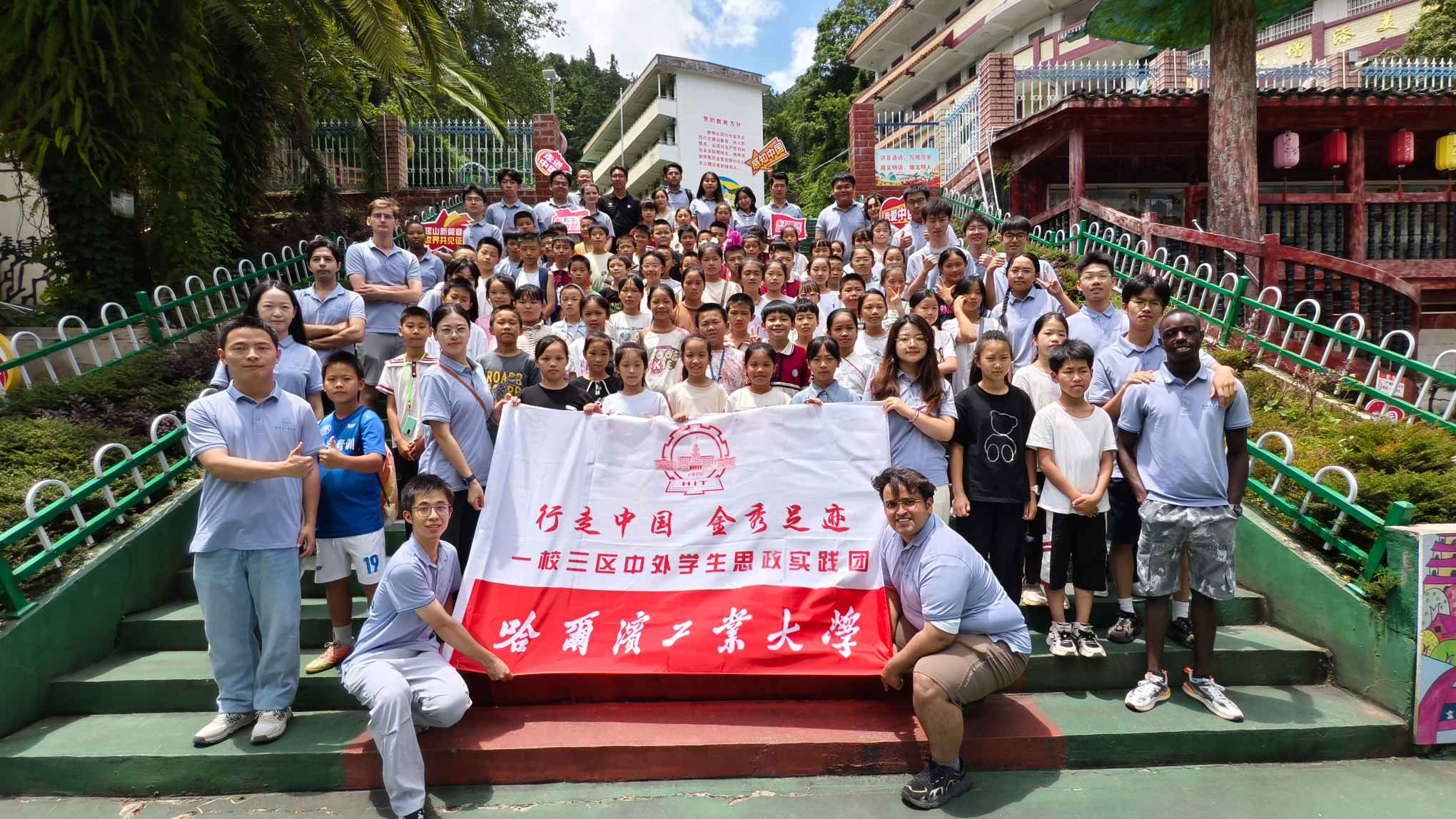 晨光熹微,小城將醒,哈爾濱工業(yè)大學(xué)“行走中國 金秀足跡”中外民族團(tuán)結(jié)實(shí)踐團(tuán)的隊(duì)員們和金秀縣民族小學(xué)的孩子們一起踏入校園,共同開啟為期兩天的支教活動,播撒下夢想與希望的種子,潤物細(xì)無聲。