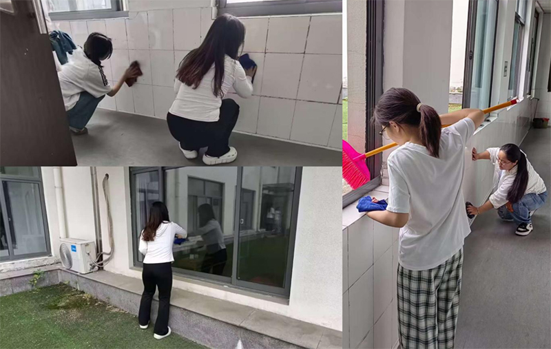活動最后,團隊成員在老年大學(xué)進行志愿服務(wù)工作,有的與老年朋友進行親切地交談,有的進行校園綠化工作,如擦玻璃、清掃地面、清理垃圾等,為學(xué)員創(chuàng)造一個優(yōu)美的學(xué)習(xí)環(huán)境,為這個炎熱的夏天添上一抹愛的色彩,展示了當(dāng)代大學(xué)生的青春陽光風(fēng)貌。