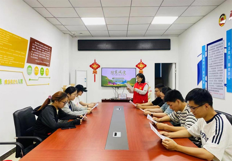 圖為樂知學堂赴滁州市龍蟠南苑社區實踐小分隊和社區工作人員在開防震減災的會議。劉春曉 供圖
